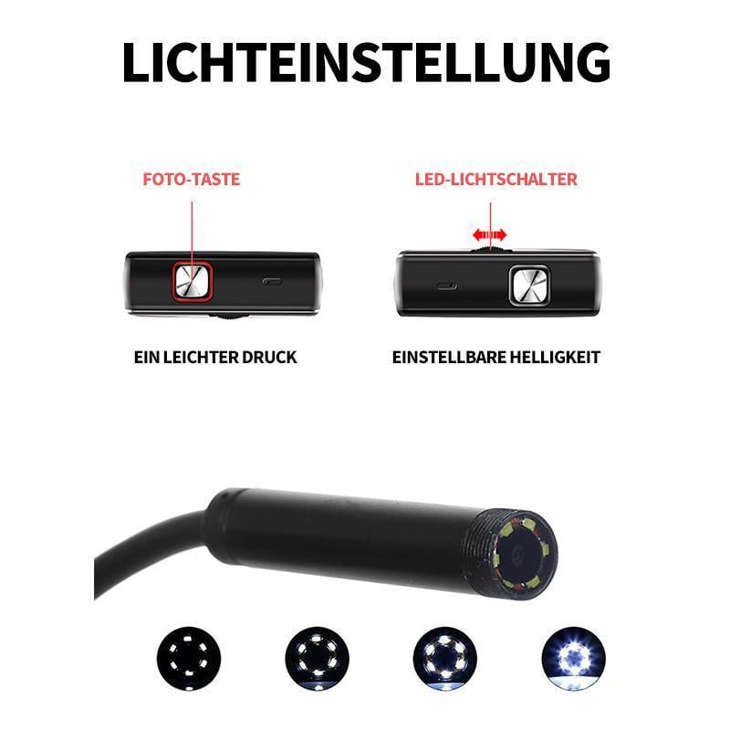 Wir empfehlen dieses Produkt allen unseren Freunden und Kunden als unverzichtbares Gadget für viele Situationen. Diese einfach zu bedienende Endoskop-Kamera eignet sich perfekt für Ihr Zuhause oder Ihr Auto.