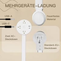 Alle Geräte an einem Ort laden: Ausgestattet mit USB-A- und USB-C-Anschlüssen sowie zwei AC-Steckdosen. Die USB-Ports liefern eine Ausgangsleistung von 5 V / 2,4 A und ermöglichen das gleichzeitige Laden mehrerer Geräte.