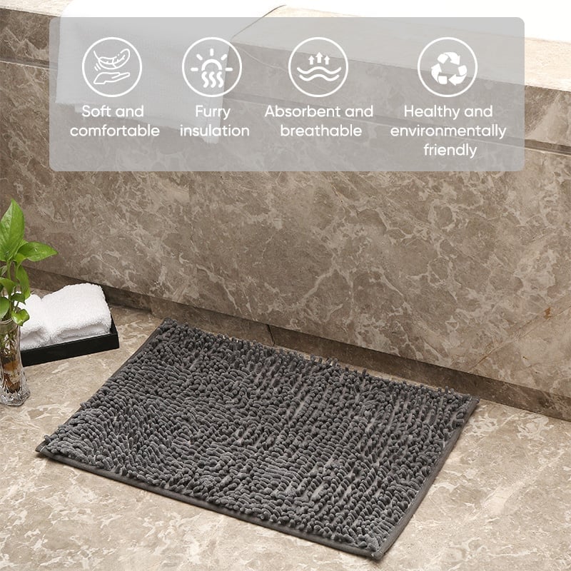 🧽 Super saugfähiges Chenille: Hergestellt aus hochwertigem Polyester-Chenille, saugt diese Matte Feuchtigkeit schnell auf und trocknet rasch, um Ihre Böden den ganzen Tag über sicher und trocken zu halten – perfekt für Eingangsbereiche, Küchen oder Badezimmer.