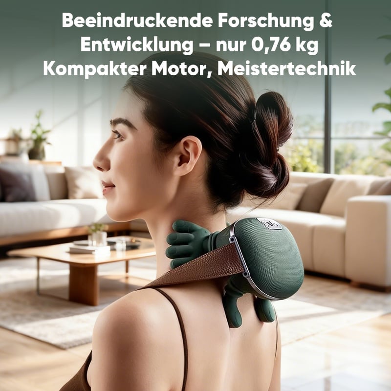 Dieses tragbare Massagegerät wurde entwickelt, um die ergonomische Präzision menschlicher Hände nachzuahmen. Es bietet eine tiefgehende Shiatsu-Massage mit intelligenter Wärmefunktion, ideal zur gezielten Linderung von Verspannungen in Nacken und Schultern.